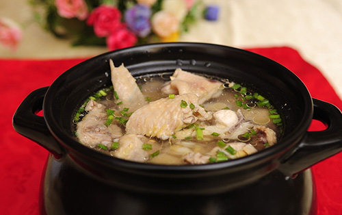 冬天是支氣管炎的高發(fā)季節(jié),其預(yù)防辦法之一是喝雞湯,尤其有益于兒童。據(jù)分析,母雞脂肪具有增強(qiáng)支氣管黏膜分泌和化痰的作用。此外,雞肉中有一種特殊的物質(zhì),可以增強(qiáng)咽部血液循環(huán)和鼻腔黏膜分泌,對(duì)保持呼吸道通暢、清除呼吸道病毒、緩解感冒鼻塞及治療咽干、咳嗽等病癥大有裨益。