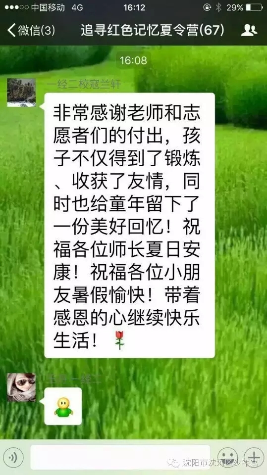 兩天的活動(dòng)在少年宮老師細(xì)心周到地安排下,孩子們過(guò)得既充實(shí)又開(kāi)心。滿洲省委舊址里認(rèn)真地聆聽(tīng)講解、樹(shù)蔭下聽(tīng)老英雄追憶往事,沈陽(yáng)市團(tuán)校內(nèi)揮汗如雨的歷奇訓(xùn)練、夜晚多功能廳內(nèi)興高采烈地聯(lián)歡、荷花池旁的駐足、科技館里探索科學(xué)世界的秘密……這一幕幕都深深地刻在了孩子們的腦海里,洪亮的口號(hào)是孩子們堅(jiān)定的信念,張張笑臉是活動(dòng)過(guò)程中成功的印記。白天孩子們共同享受團(tuán)隊(duì)生活的快樂(lè),夜晚躺在床鋪上一起述說(shuō)童年的趣事。閉營(yíng)儀式上,同學(xué)們相擁而泣,短暫的兩天讓大家結(jié)下了深厚的友誼。