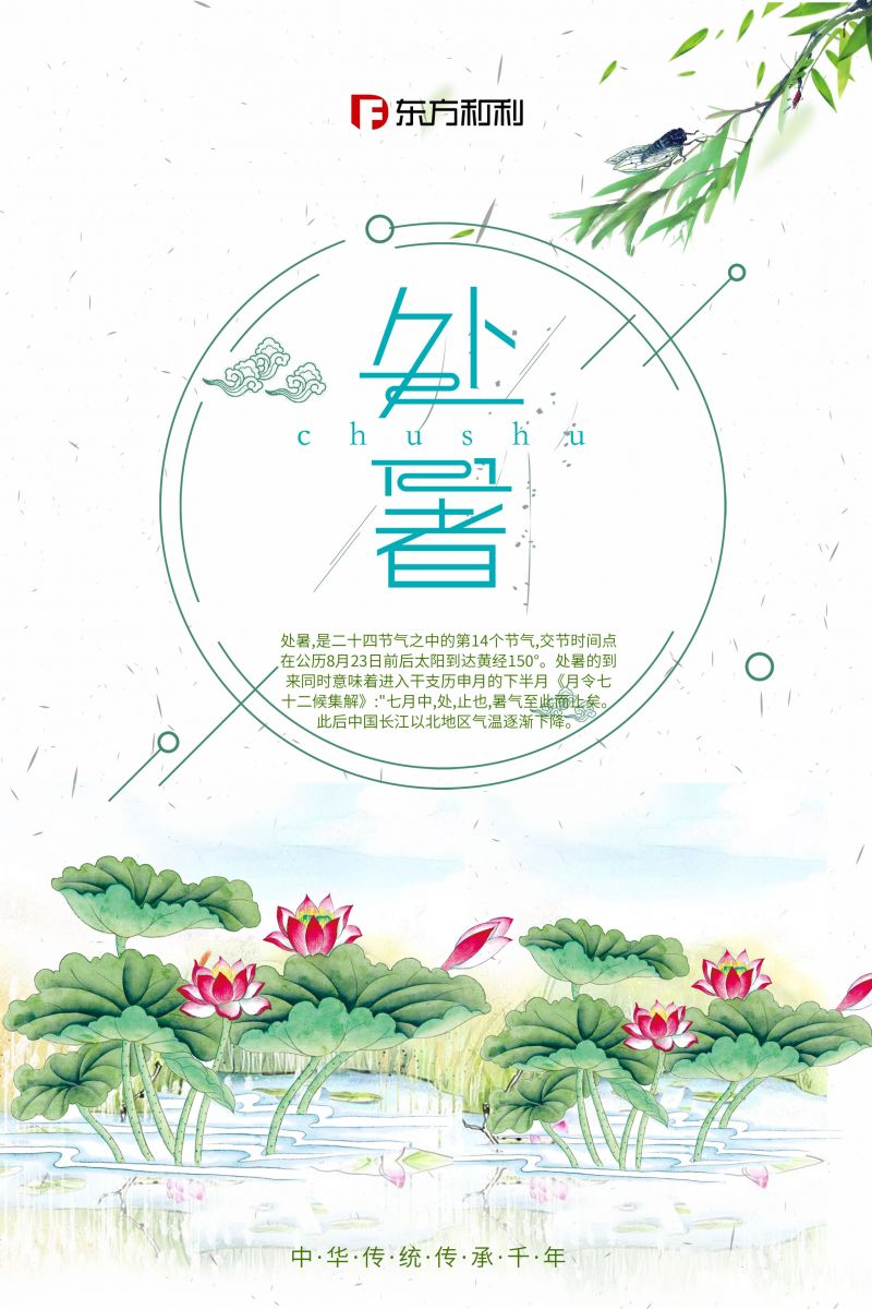處暑,即為"出暑",是炎熱離開的意思。處暑是氣候變涼的象征,表明"夏天暑熱正式終止",我國大部分地區(qū)的炎熱情況將出現(xiàn)轉折,天氣逐漸轉涼。
