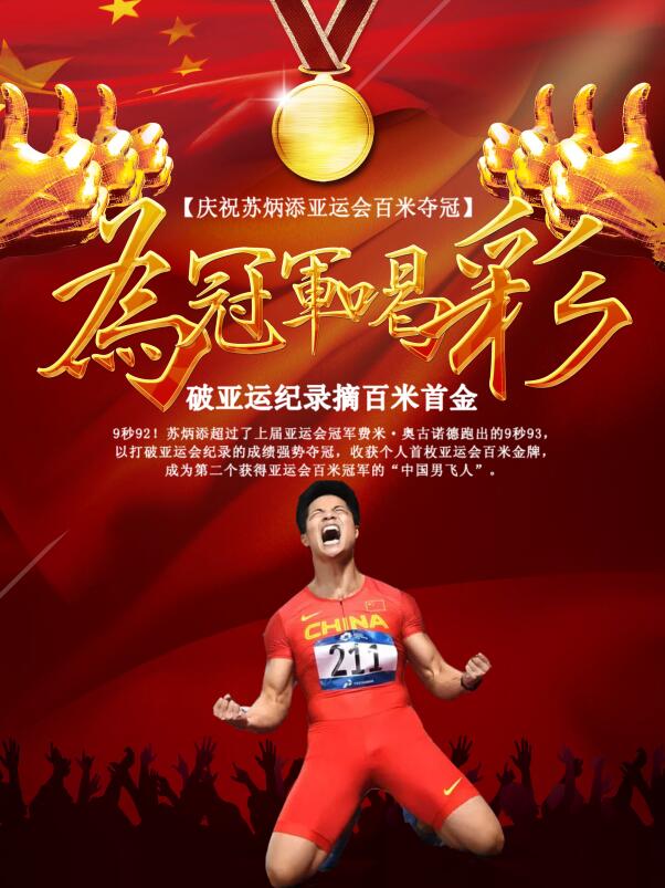 "這是我十多年運動員生涯中拿到的第一枚金牌。"沖過線后的蘇炳添接過國旗,向場邊奔跑。此前在省運會、全運會、亞運會等綜合性運動會中都未能登頂?shù)奶K炳添,終于收獲了一枚個人項目金牌。