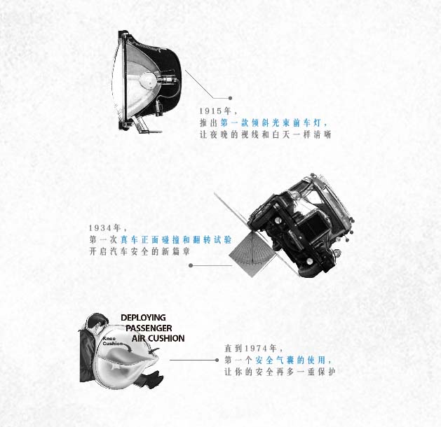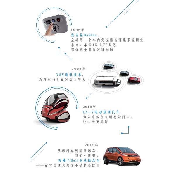 1996年全球第一個車內(nèi)免提語音通訊系統(tǒng)誕生;2005年,V2V通訊技術(shù),為汽車與世界對話而努力;2010年,EN-V電動聯(lián)網(wǎng)汽車,為未來城市交通遠(yuǎn)景而生;2015年,從燃料車到新能源車,我們不斷努力。