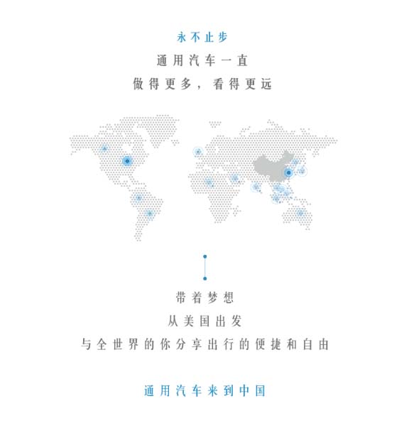 永不止步,做得更多,看得更遠(yuǎn),從美國出發(fā),與全世界的你分享出行的便捷和自由,通用汽車來到中國。
