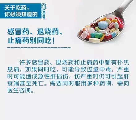 許多感冒藥、退燒藥和止痛藥中都有撲熱息痛(請仔細(xì)閱讀說明書)。如果同時(shí)使用兩種感冒藥,或同時(shí)吃退燒藥和止痛藥,造成撲熱息痛攝入過量,會(huì)造成急性肝損傷,嚴(yán)重會(huì)引起肝衰竭甚至死亡。
